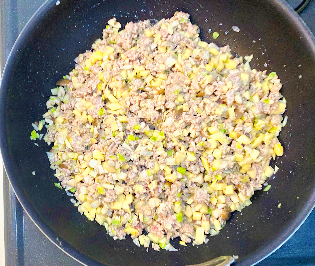 | ④ ★を入れ、少し煮詰めたら水溶き片栗粉でトロミをつけ、ごま油をひとまわしする | |