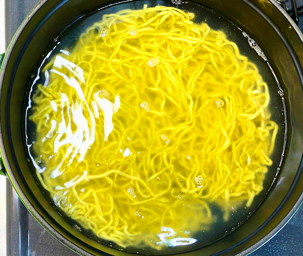 | ③ 湯が沸いたら麺を茹で、水でさっと洗い水気を切る | ![]() |