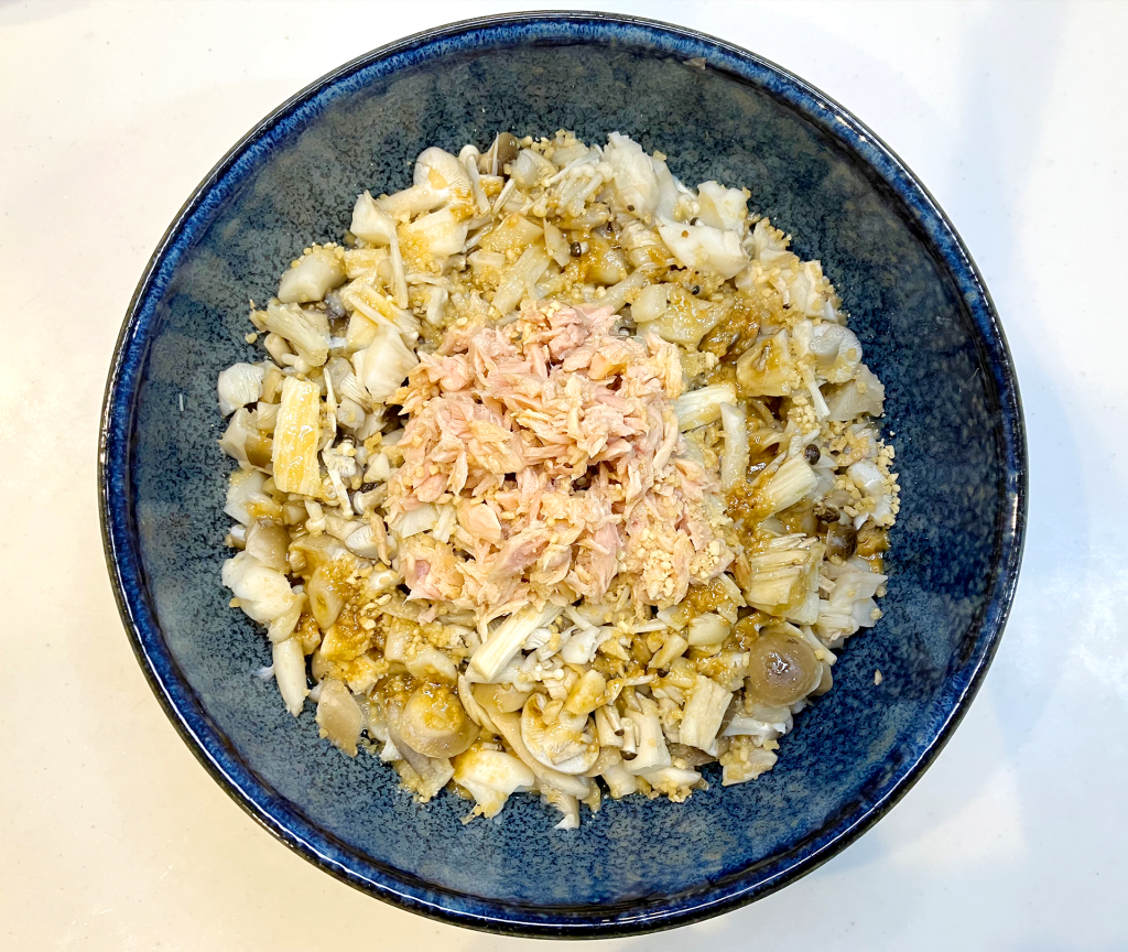③ ツナと調味料を入れて混ぜる | ![]() |