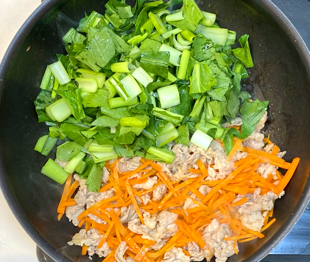 ③ 少し人参がしんなりしたら小松菜を入れる | ![]() |