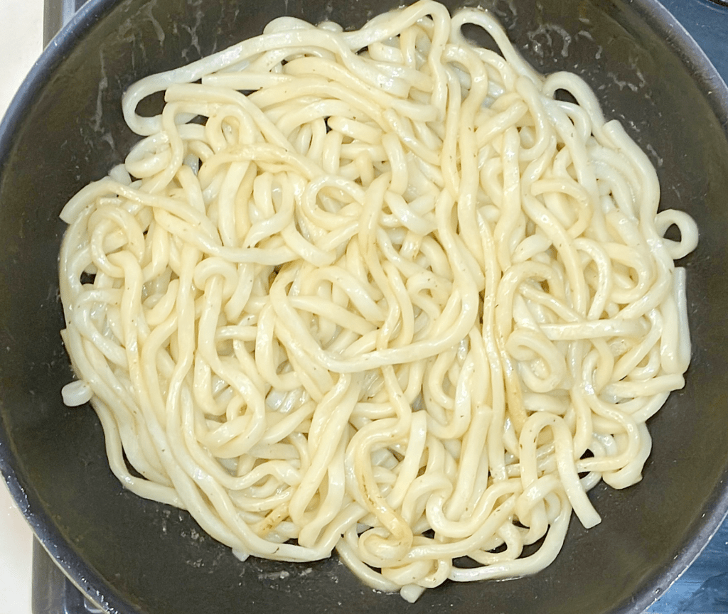 | ⑤ 同じフライパンにごま油大匙1とうどんを入れて炒める | ![]() |