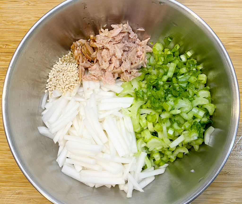 | ② ボールに①と油を切ったツナ、調味料を加え混ぜる | ![]() |