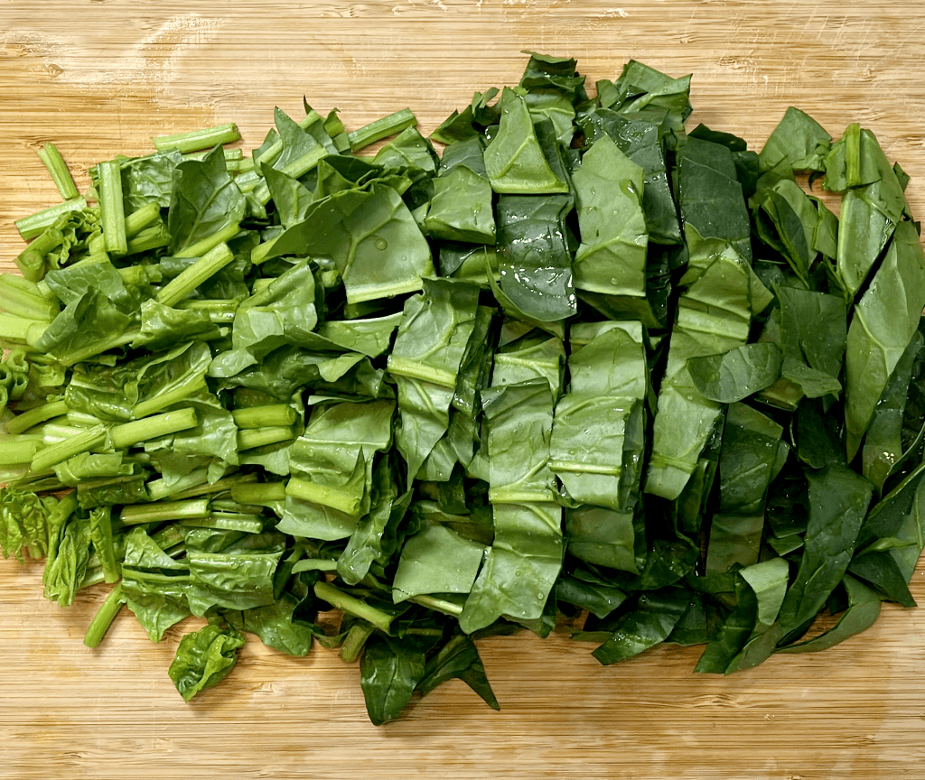 ③ 3センチ幅に切り、洗ったほうれん草を②に入れる | ![]() |