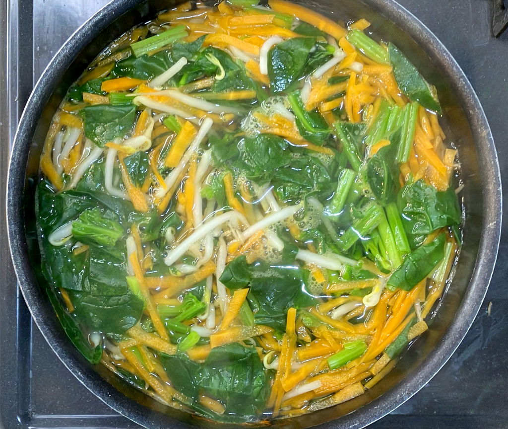 | ④ 再沸騰したら洗ったもやしを加える | ![]() |