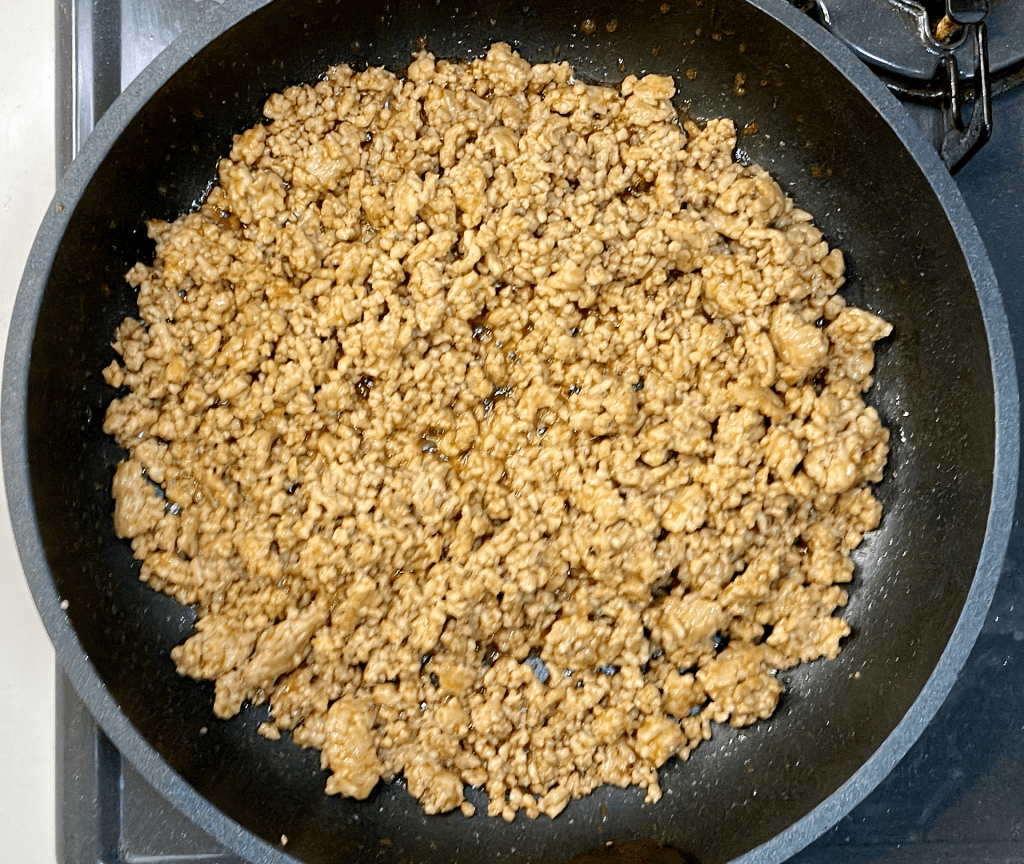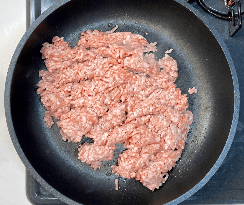 ⑥ フライパンに油をしいてひき肉を炒める | ![]() |