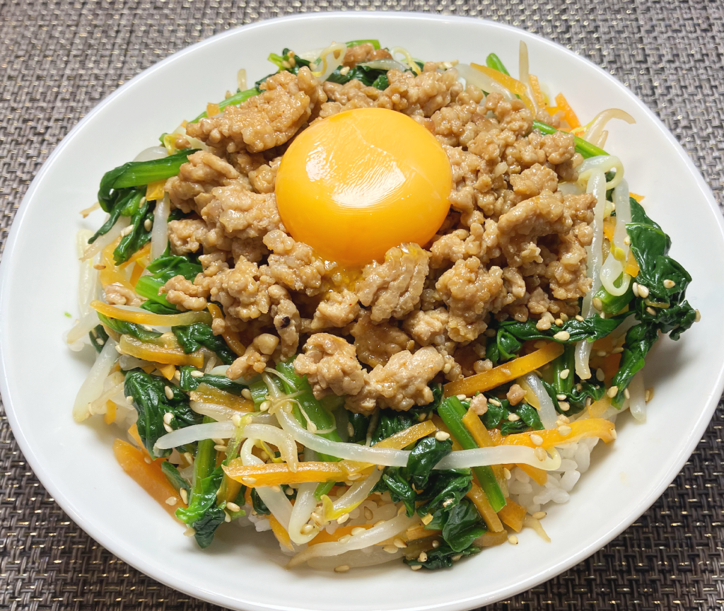 冷凍ほうれん草を使えば、野菜の価格が高騰している時でも比較的作りやすいメニューではないでしょうか。ビビンパ丼に、果物、ヨーグルト等をプラスして食べることができれば、栄養バランスも整い、豚肉パワーで疲労回復も期待できますよ♪