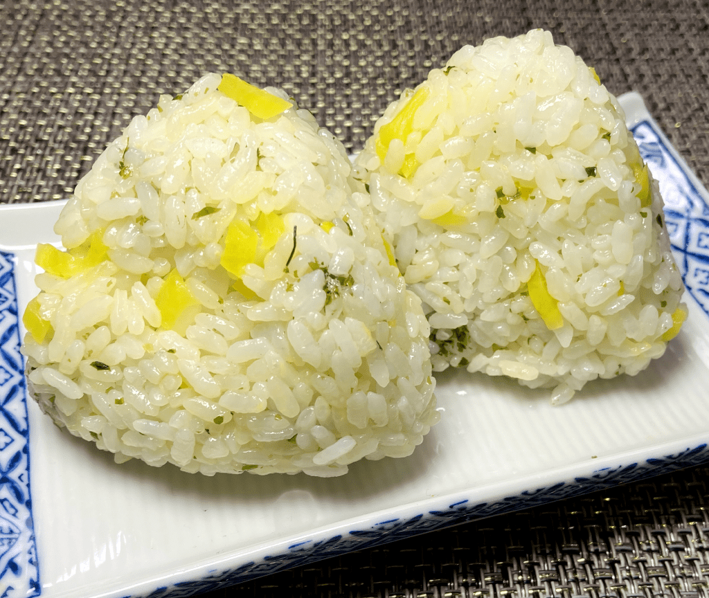 | ① たくあんを刻み、全ての材料を混ぜおにぎりを握る | ![]() |