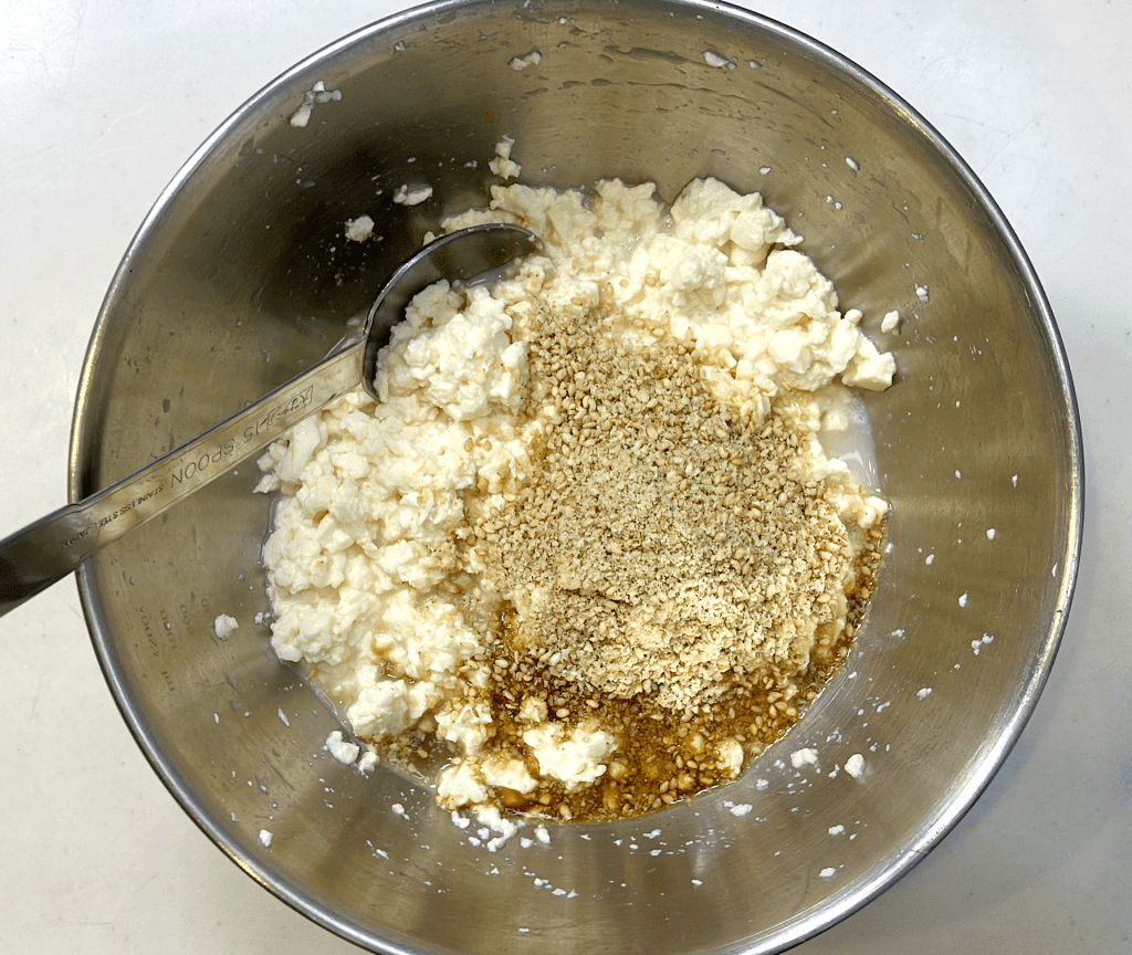 | ④ 豆腐をボールに入れて、泡だて器でよく混ぜ、★の調味料を入れ混ぜる | ![]() | |