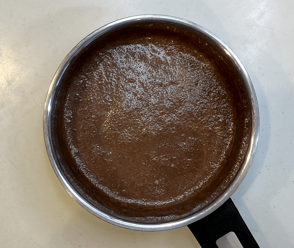 | ① 小さな鍋にココア、片栗粉、砂糖を入れてよく混ぜ、少しずつ牛乳を加えさらに混ぜる | ![]() |