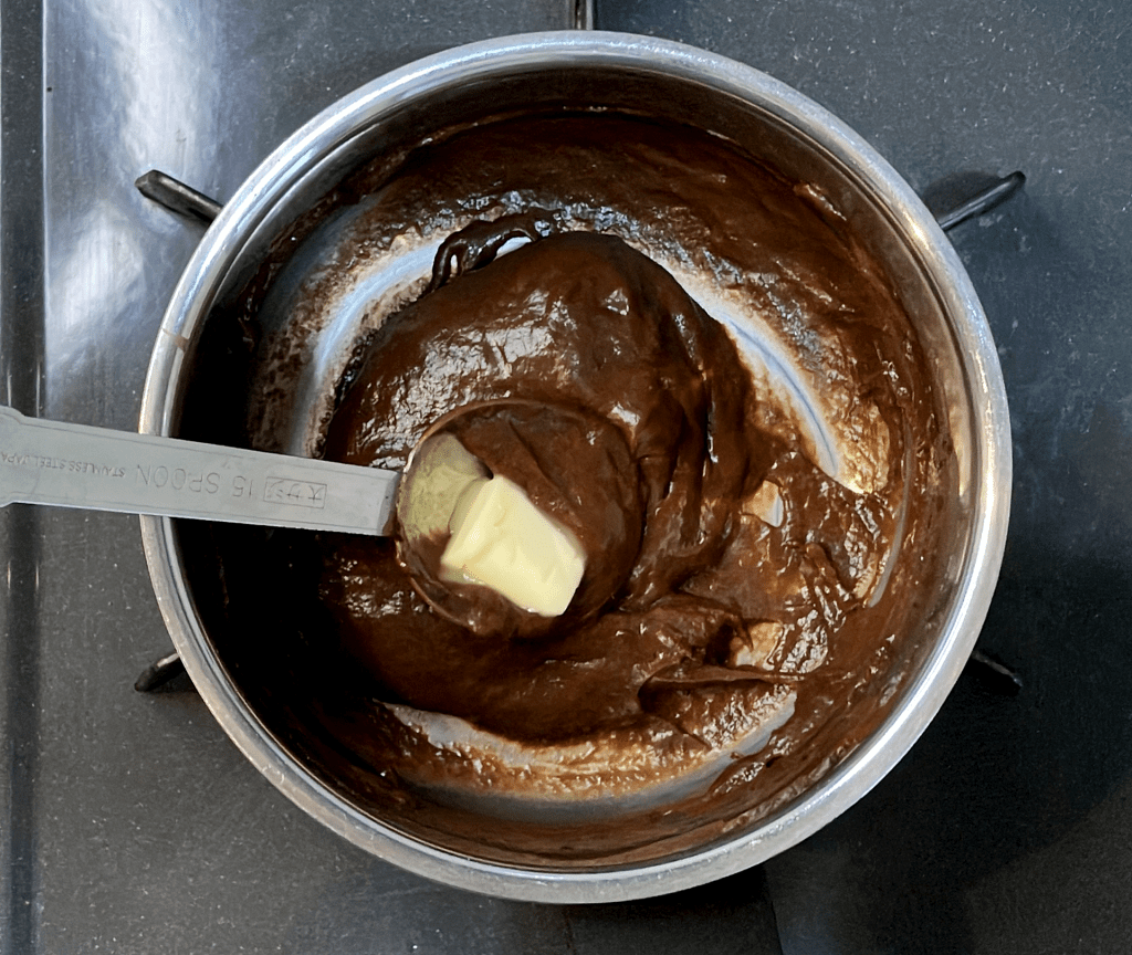 ③ とろみがついてきたら、バターを加えさらに混ぜる | ![]() |
