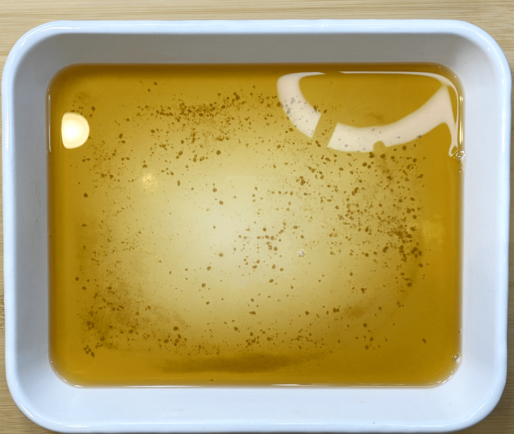 ⑤ | 油を切り、熱いうちに野菜の上に並べ、少ししたら味が染みるように上下を逆さにする ![]() |