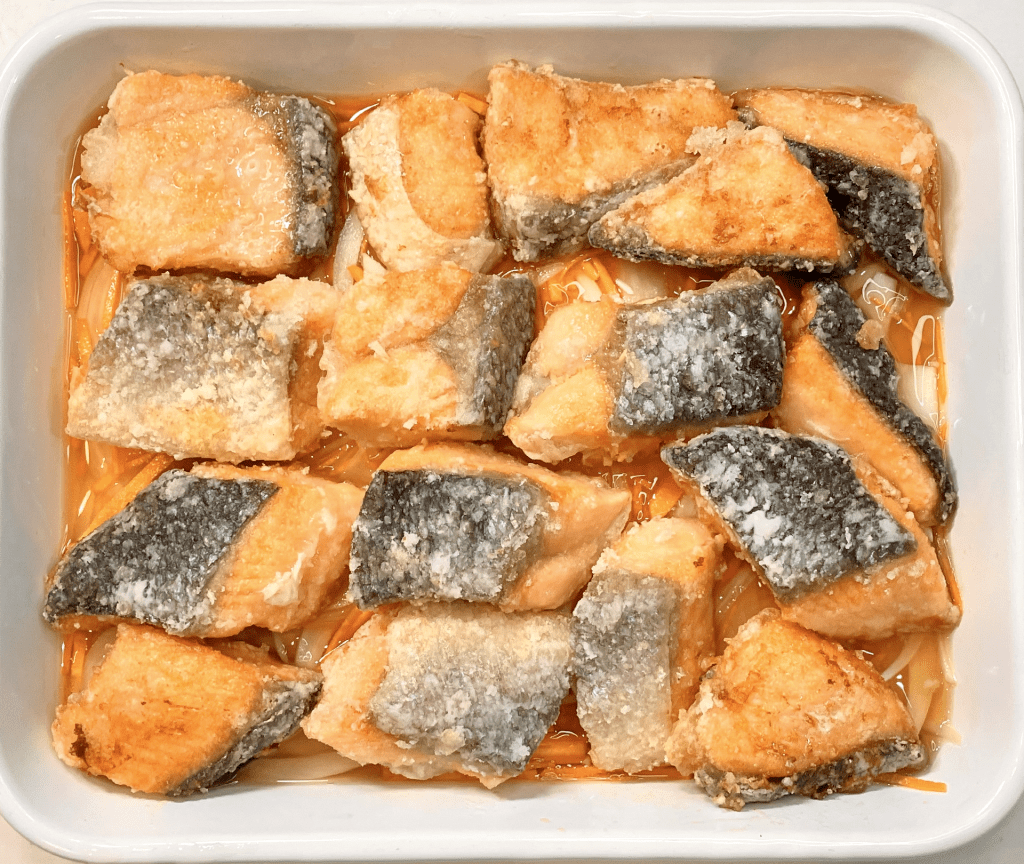 汗をよくかく暑い季節は水分補給をしっかりと行い、血液をサラサラにしてくれる食べ物も積極的に食べることで血流・血行が良くなります。必要な栄養素や酸素が血液と一緒に体のすみずみまで送られると持久力が増加したり、疲労感を軽減したりすることができるのでおすすめですよ。今回は血液サラサラ効果のある食材をたくさん使った魚の南蛮漬けをご紹介します。